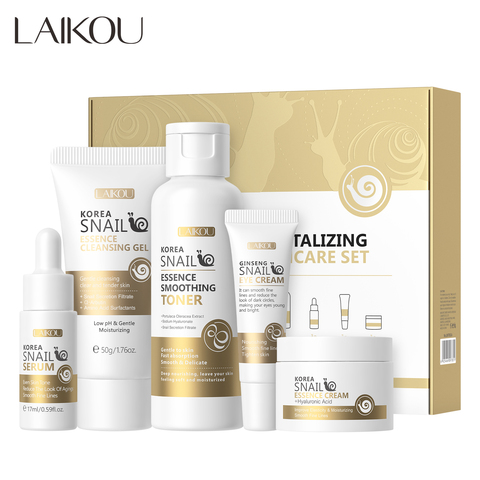 LAIKOU Lot de 5 soins de la peau hydratants multi-effets Acide aminé Nettoyant pour le visage Sérum tonique Essence Crème pour les yeux sans métaux lourds